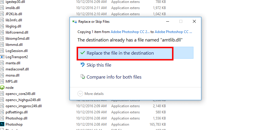 তারপর ডাউনলোড করা ফাইল থেকে amtlib.dll এই নামের ফাইলটি Copy করে ফটোশপ লোকেশন ফাইলে Paste করে দেবেন।